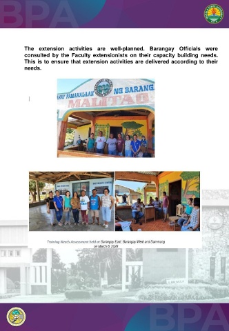 The extension activities are well-planned. Barangay Officials were consulted by the Faculty extensionists on their capacity building needs. This is to ensure that extension activities are delivered according to their needs.