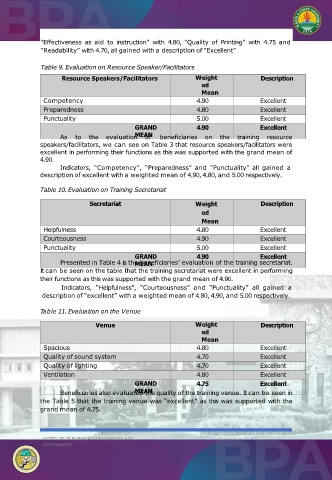 Presented in Table 4 is the beneficiaries’ evaluation of the training secretariat.
