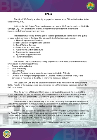 The ISU-IPAG Faculty are heavily engaged in the conduct of Citizen Satisfaction Index