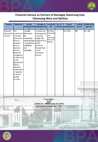 Financial The To train To attain the Barangay ISU-IPAG LBP ISU, LBP