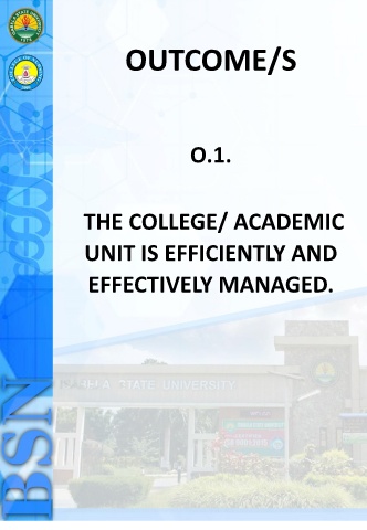 OUTCOME/S O.1. THE COLLEGE/ ACADEMIC UNIT IS EFFICIENTLY AND EFFECTIVELY MANAGED.