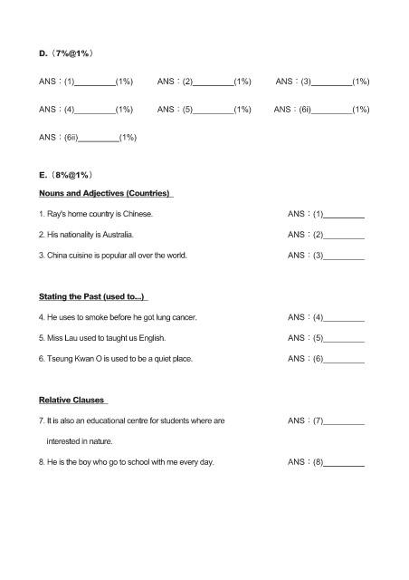 5. Miss Lau used to taught us English. ANS:(5)_________