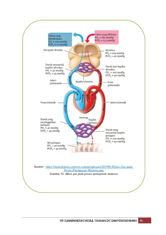 Sumber : https://materikimia.com/wp-content/uploads/2019/01/Difusi-Gas-pada- Proses-Pernapasan-Manusia.png Gambar 32: difusi gas pada proses pernapasan manusia TRI SUWARNINGSIH | MODUL TEKANAN ZAT DAN PENERAPANNYA 86
