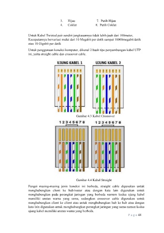 memiliki urutan warna yang sama, sedangkan crossover cable digunakan untuk