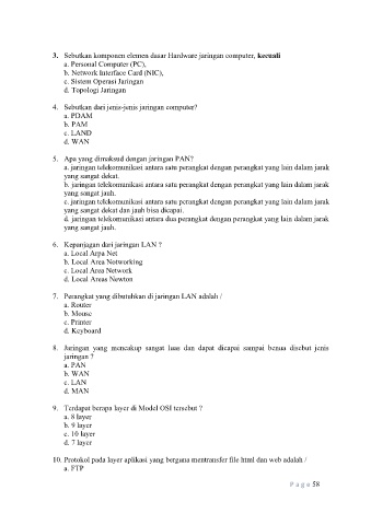 3. Sebutkan komponen elemen dasar Hardware jaringan computer, kecuali