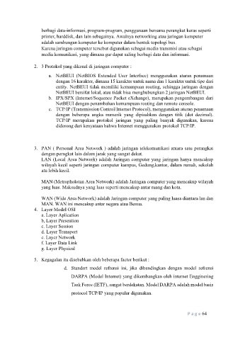printer, harddisk, dan lain sebagainya. Awalnya networking atau jaringan komputer