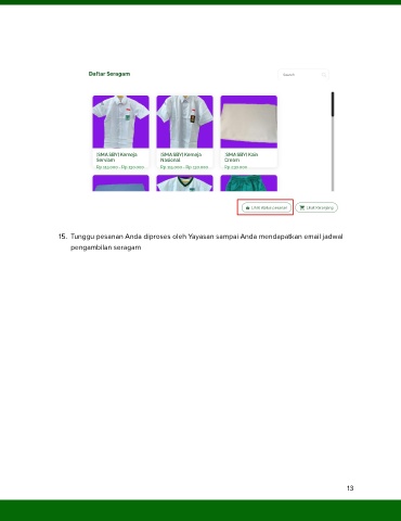 15. Tunggu pesanan Anda diproses oleh Yayasan sampai Anda mendapatkan email jadwal pengambilan seragam 13