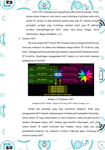 dinamis. Walaupun begitu, NAT dinamis juga memiliki kekurangan, yaitu jika