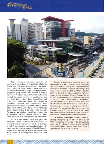 pusat kecemerlangan di pelbagai pusat pengajian. learning centres. The core of UM’s contributions to