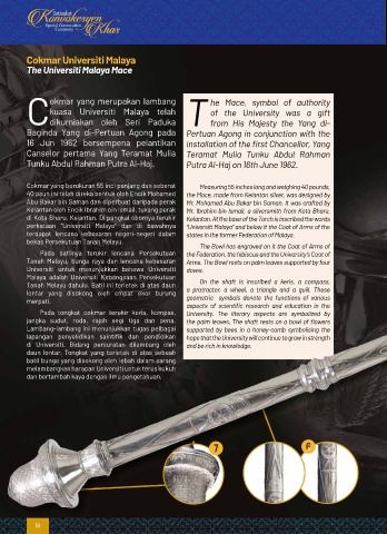 Pada batilnya terukir lencana Persekutuan the Federation, the hibiscus and the University’s Coat of