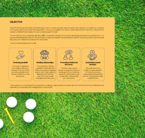 The UM-NUS Inter-University Golf Tournament aims to foster goodwill and strengthen ties between the National University