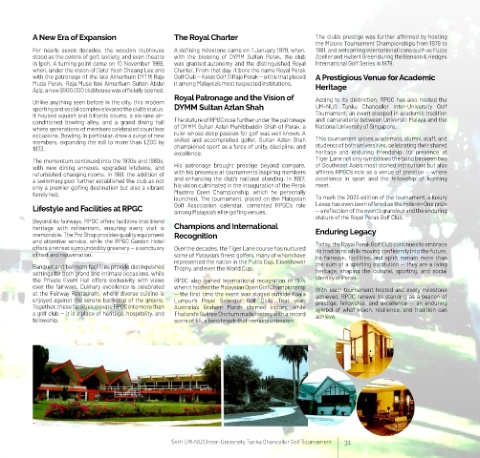 sporting and social complex elevated the club’s status. DYMM Sultan Azlan Shah UM–NUS Tunku Chancellor Inter-University Golf
