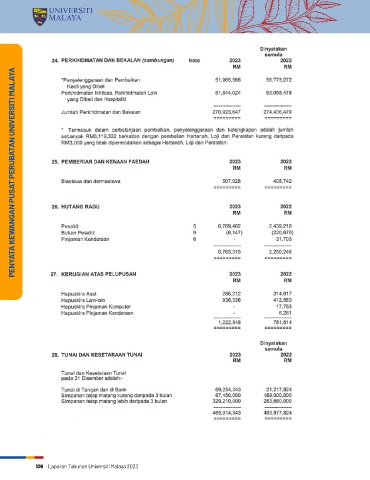 Page 108 - Penyata Kewangan Universiti Malaya dan Pusat Perubatan Universiti Malaya 2023