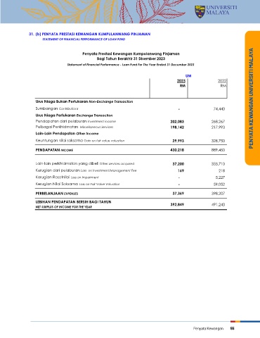 31. (a) PENYATA KEDUDUKAN KEWANGAN KUMPULANWANG PINJAMAN 31. (b) PENYATA PRESTASI KEWANGAN KUMPULANWANG PINJAMAN