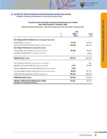 32. (a) PENYATA KEDUDUKAN KEWANGAN KUMPULANWANG BIASISWA DAN HADIAH 32. (b) PENYATA PRESTASI KEWANGAN KUMPULANWANG BIASISWA DAN HADIAH