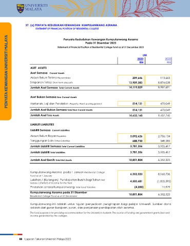 37. (a) PENYATA KEDUDUKAN KEWANGAN KUMPULANWANG ASRAMA 37. (b) PENYATA PRESTASI KEWANGAN KUMPULANWANG ASRAMA