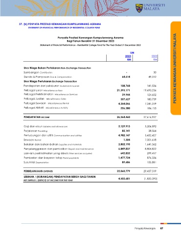 37. (a) PENYATA KEDUDUKAN KEWANGAN KUMPULANWANG ASRAMA 37. (b) PENYATA PRESTASI KEWANGAN KUMPULANWANG ASRAMA