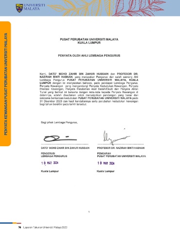 PENYATA KEWANGAN PUSAT PERUBATAN UNIVERSITI MALAYA 76 Laporan Tahunan Universiti Malaya 2023