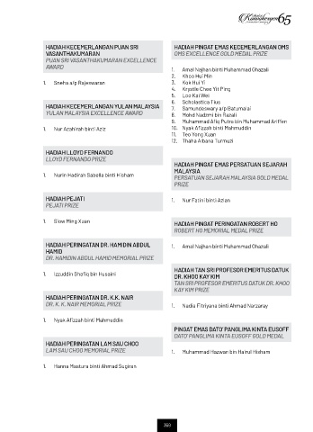 DR. K. K. NAIR MEMORIAL PRIZE 1. Nadia Fitriyana binti Ahmad Narzaray