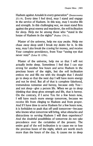 sleep, and which fills me with heretical ideas that if I entire goal of the evil inclination is to cause me to lose