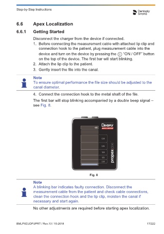 - Blocked root canals; on the top of the device. The first bar will start blinking.