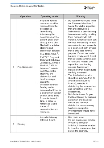 • Limitations and restrictions on reprocessing: cleaning, pre- • are fully immersed.