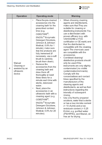 4 assisted by an cleaning bath and contaminated (no visible • Follow the “Disinfection and sterilization procedure” described in
