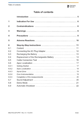 6.4 Replacement of the Rechargeable Battery Table of contents