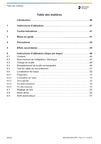 6.4 Remplacement de la pile rechargeable . . . . . . . . . . . . . . . . . . . . . . . . . .49 - Présence de liquides et/ou de débris tissulaires dans la cavité