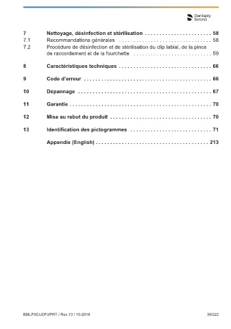 • Les valeurs relevées peuvent être imprécises ou erronées en raison de 7 Nettoyage, désinfection et stérilisation . . . . . . . . . . . . . . . . . . . . . . . 58