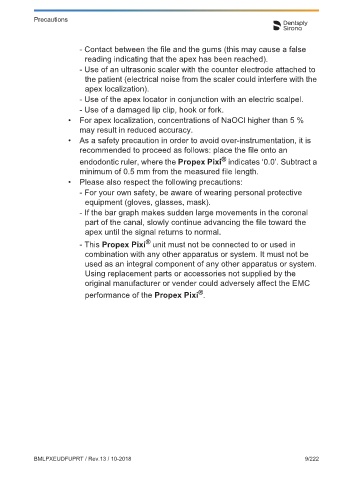 - Presence of liquids and/or tissue debris in the access cavity. Prior - This Propex Pixi unit must not be connected to or used in