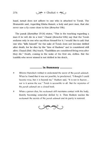 thereby becoming somewhat defiled by it. Then Hashem teaches the