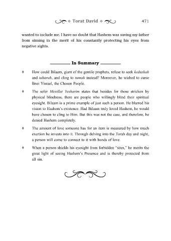 vision to Hashem’s existence. Had Bilaam truly loved Hashem, he would