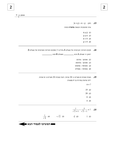 |x + y| = x – y :ןותנ .13 .הדיעווה ךלהמב הרתפנ אל ,םויה רדס לע ודמעש לקשמה תודבכ תויגוסה ןמ תחא ףא .12