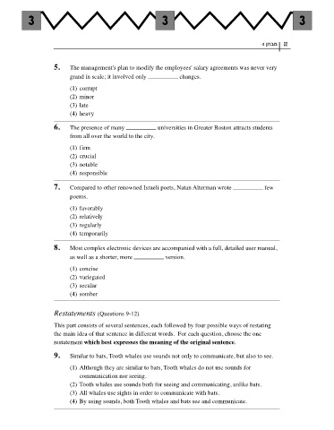 (3) A Study of Violence in Protests This part consists of several sentences, each followed by four possible ways of restating