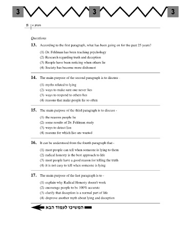 3 4 4 32 .14 .13 4 4 4 4 4 םירקסה וארה ?חרכהב ןוכנ המ :15 13 תולאשל תוארוה ירהש ,הב התכז תירימ יכ 4 4 הובג םינויצ עצוממ 3 4 4 לש תחלצומה םתצע / חומשל / החינצ / יפל (4) הניא איה / היה יזא / יחרכה היה אל / אלול (4) הניא איה / היה יזא / יחרכה היה אל / וליא (2) תירימ / הז היה אל / קיפסמ יאנת היה / אלול (3) .רסחה תמלשהל רתויב המיאתמה העצהב רוחבל םכילע .רסחה לע ךמס אלש