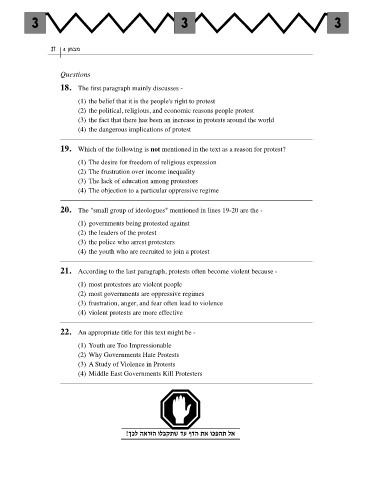 20. The "small group of ideologues" mentioned in lines 19-20 are the - 7. Compared to other renowned Israeli poets, Natan Alterman wrote few