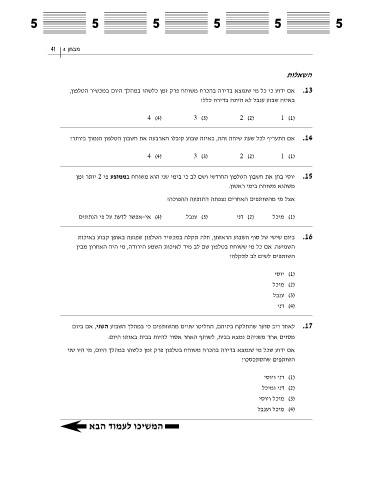 5 5 40 .ןופלטב 4 (1) 5 5 עובש 10% (1) :ארקמ עובשב םוי יסוי (2) 'ה 20 13 12 3 4 20% (2) (17 13 תולאש) םישרתמ הקסה ?15 ל םיווש x מ םיזוחא המכ ?ןיכהל לוכי אוה חמק ג"ק המכ 5 5 'ד (3) 12 3 4 .חמק ג"ק 6 ןיכהל ןתינ הטיח תודש 10 מ .11 .דחא סרית הדשו דחא הטיח הדש ןבוארל .חמק ג"ק ןיכהל ןתינ סרית תודש 10 מ 13 10 25% (3) ינד 'ג 12 3 4 .וירחאש תולאשה שמח לע ונעו ,םכינפלש םיש