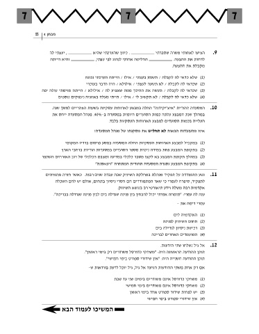 7 7 54 .8 .7 .6 .5 4 גלפ : גלפל :9 7 תולאשל תוארוה חוסינ : חסנל (4) סיסר : ססרל (1) הדוקנ : דקנל (3) ילארשיה םינקתה הסורפ : סורפל (2) תודוותה : אטח (1) תונקורתה : ןכות תודאתה : הליזנ (2) תודמגתה : דמעמ (4) תורוועתה : הייאר (3) וז הדבוע .הדוד ןב אוה (17 7 תולאש) הקסהו הנבה תולאש ,היואר הניאש תוגהנתהל ונתרבחב ןקת ות לבקי אל ךא , 7 7 . ילארשי / ינקירמא