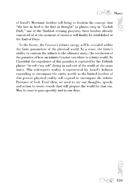 for the physical borders of the Land: the greater the Jewish people’s the finite parameters of the physical world. In a sense, the finite’s