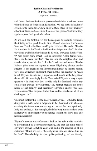 Eliyahu’s answer was – One must look at the help a wife provides ה ָיוּא ְר ָה ה ָע ָשּׁ ַבּ ה ָח ָכוֹתּ