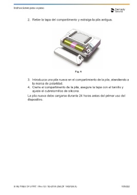 6.4 Sustitución de la pila recargable 2. Retire la tapa del compartimento y extraiga la pila antigua.