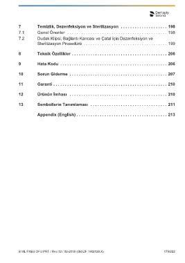 6 Adım Adım Talimatlar 7 Temizlik, Dezenfeksiyon ve Sterilizasyon . . . . . . . . . . . . . . . . . . . . 198