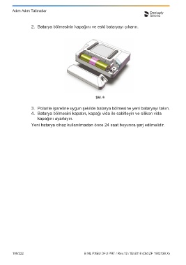 2. Batarya bölmesinin kapağını ve eski bataryayı çıkarın. 6.2 AC Fişli Adaptörün Bağlanması