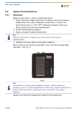 1. Ölçüm kablosunu bağlı dudak klipsi ve bağlantı kancası ile hastaya 3 dak. uygun şekilde sterilize