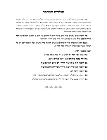 ףסוי יבר ג"הרהו .םיקלח 'ב םייח ןיע ,םיקלח 'ה םייח ירוכיב ,םייח ראב ,םיעדונ םירפס רבחל הכז ןנחלא קחצי יבר ןואגה םינברה ןקז ידי לע הארוהל ךמסנ םש ,םהה םינשב אטילב םיגלפומה םיכרבאה