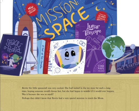 Berrie the little spacecraft was very excited. She had waited in the toy store for such a long Moon. I’m not even built to get there.”