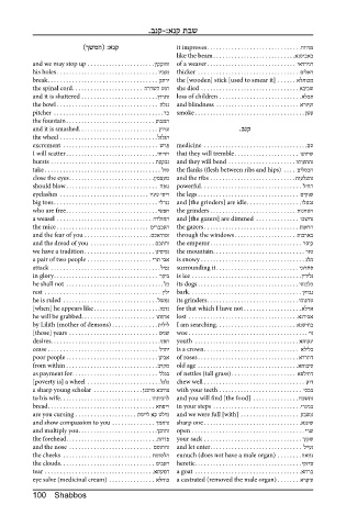 eyelashes . . . . . . . . . . . . . . . . . . . . . . . . . . . . . ויניע יסיר the legs . . . . . . . . . . . . . . . . . . . . . . . . . . . . . . . . . םיקוש to prepare . . . . . . . . . . . . . . . . . . . . . . . . . . . . . . דבעימל