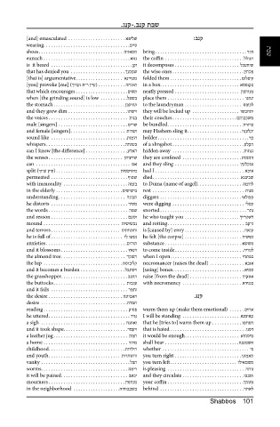 listen . . . . . . . . . . . . . . . . . . . . . . . . . . . . . . . . . . . .ותיצת that is worried . . . . . . . . . . . . . . . . . . . . . . . . . . . . שחד he is full of . . . . . . . . . . . . . . . . . . . . . . . . . . . . . ול ושענ he felt [the corpse] . . . . . . . . . . . . . . . . . . . . . . . היששג