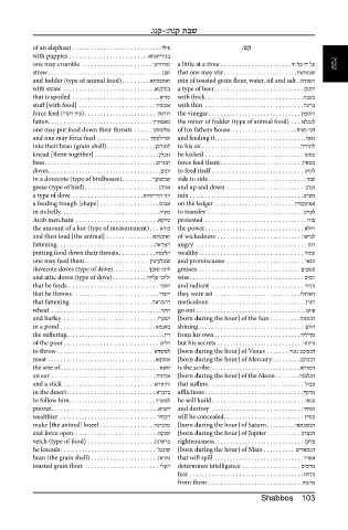 [into] many bundles . . . . . . . . . . . . . . . . תוליבח תוליבח a large fenced-in area . . . . . . . . . . . . . . . . . . . . . ףפרק make [the animal] kneel . . . . . . . . . . . . . . . . . הציברמ [born during the hour] of Saturn . . . . . . . . . יאתבשבד